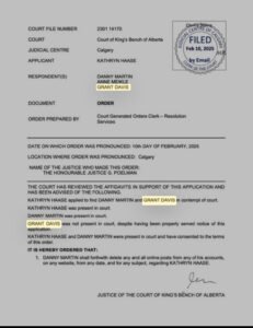 In July, 2025, Danny Keith Martin violated an Alberta Court of King’s bench order by posting about his target on twitter – for the 3rd time.